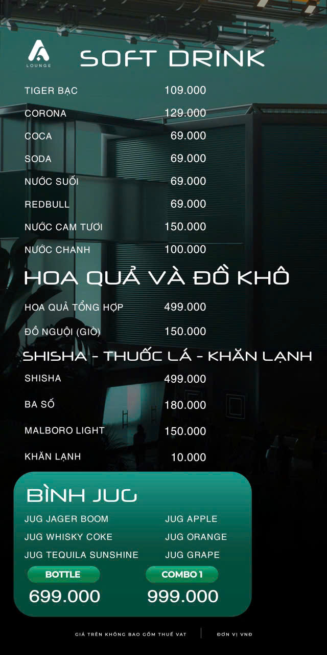 A LOUNGE là quán Lounge gái xinh tại Hà Nội, quán Lounge giá rẻ tại Hà Nội, quán Lounge cho nhóm bạn tại Hà Nội, quán Lounge mới đẹp tại Hà Nội, quán Lounge có phòng thu âm tại Hà Nội, quán Lounge có đón khách nước ngoài tại Hà Nội, quán Lounge nhạc hay tại Tây Hồ Hà Nội và quán Lounge mở muộn tại Tây Hồ được nhiều khách hàng yêu thích.